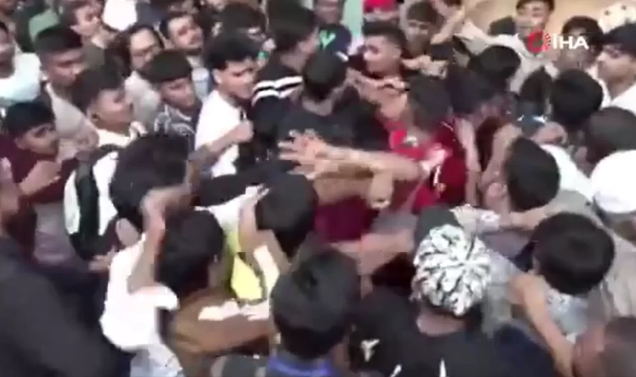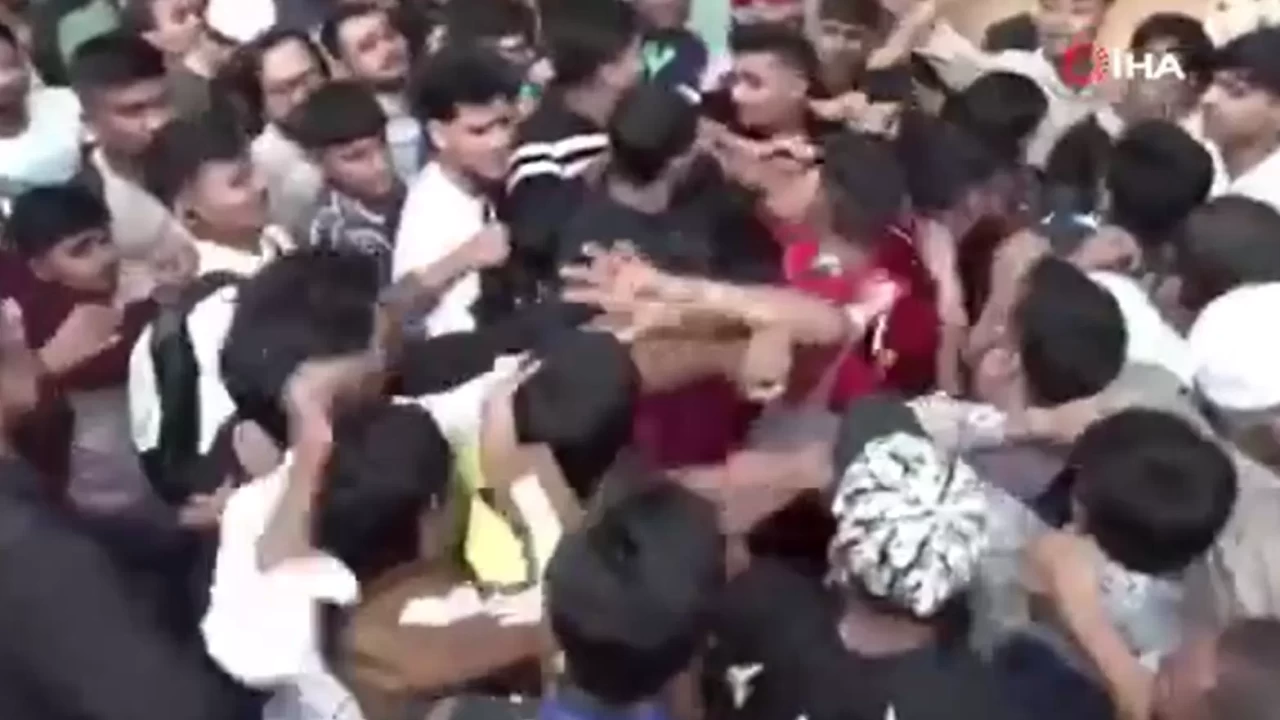 Mumbai kentindeki bir mağazanın önündeki kalabalık arasında tansiyon yükseldi. Sırada bekleyenler birbirine girdi.