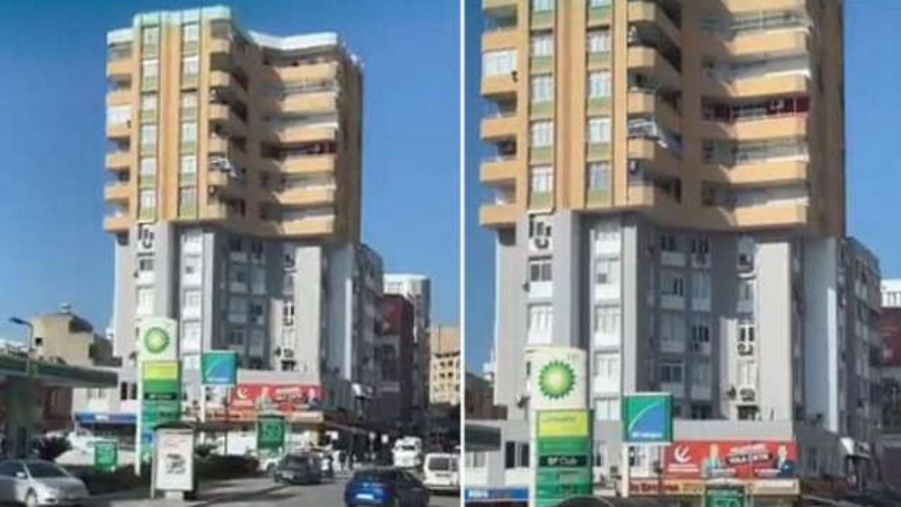 Depremin yoğun hissedildiği Adana 'da çekilen görüntüler dikkat çekti. Bir vatandaşın cep telefonuyla kaydettiği görüntülerde, apartmanın üstünde sonradan konulmuş gibi duran katların olduğu görüldü.