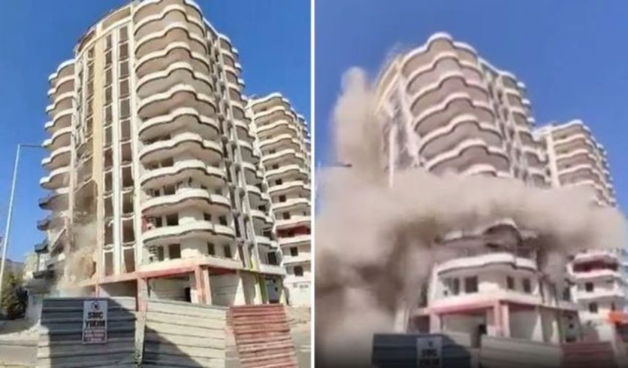 Diyarbakır'da depremin etkilediği 5 bin 459 ağır hasarlı binanın yarısından fazlasında yıkım gerçekleşti. Çalışmalar kapsamında merkez Kayapınar ilçesi Medya Mahallesi'nde ağır hasar gören bir apartman kontrollü yıkım sırasında çalınan ıslık sonrası süzüle süzüle çöktü.