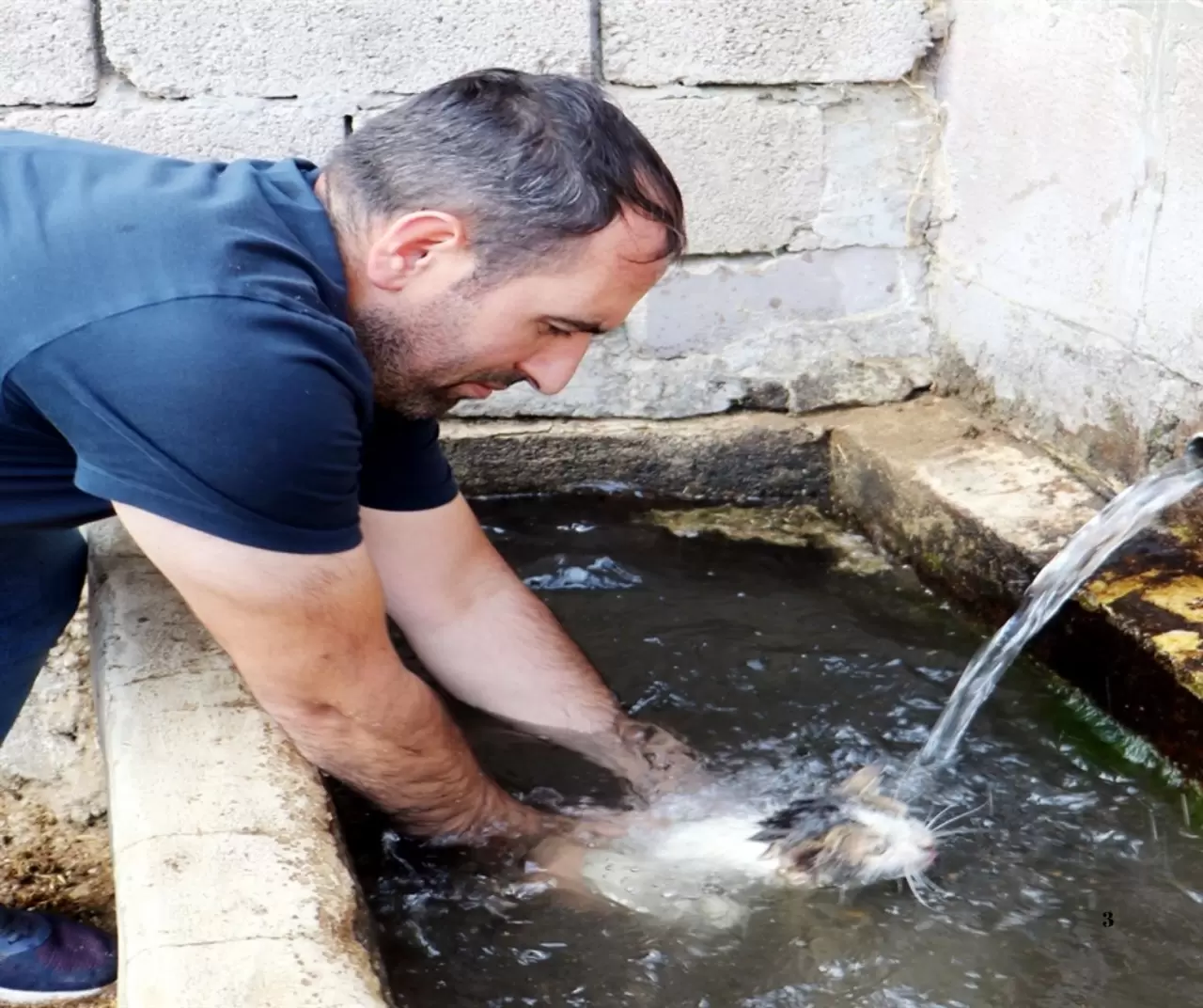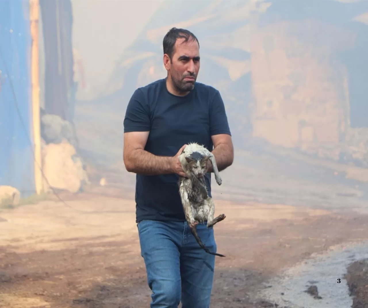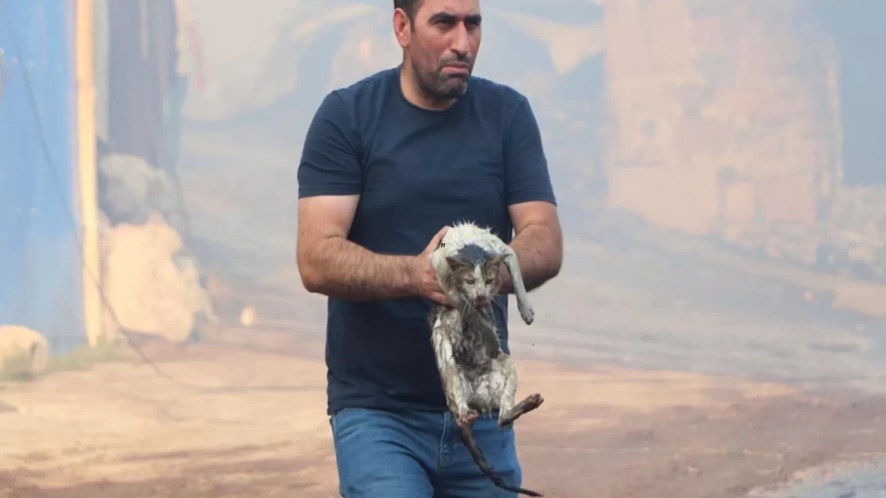 "Yangın çok büyüktü. Komşu mahalleden yardım etmek için geldim. Alevlerin sardığı bir evin içinden ses duydum. Dumanlar arasında bir kedinin çaresizce beklediğini gördüm. Hemen içeri girip onu çıkardım. Çeşme suyuyla yıkayarak kendine gelmesini sağladım. Biraz daha geç kalsam yaşayamayacaktı. Onu kurtardığım için çok mutluyum"