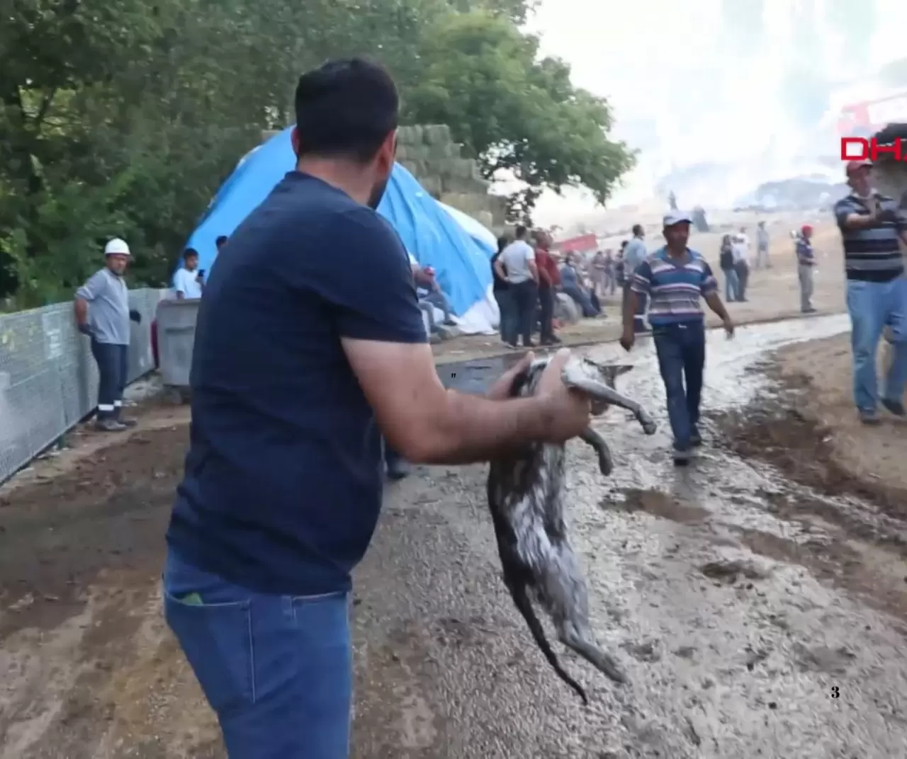 Yangın sırasında komşu mahalle olan Yeşilyayla'dan yardıma gelen Muharrem Karahan, alevlerin sardığı bir evde mahsur kalan kediyi fark etti. Alevlerin içine girerek kediyi dışarı çıkaran Karahan, çeşme suyuyla yıkayarak onu hayata döndürdü.