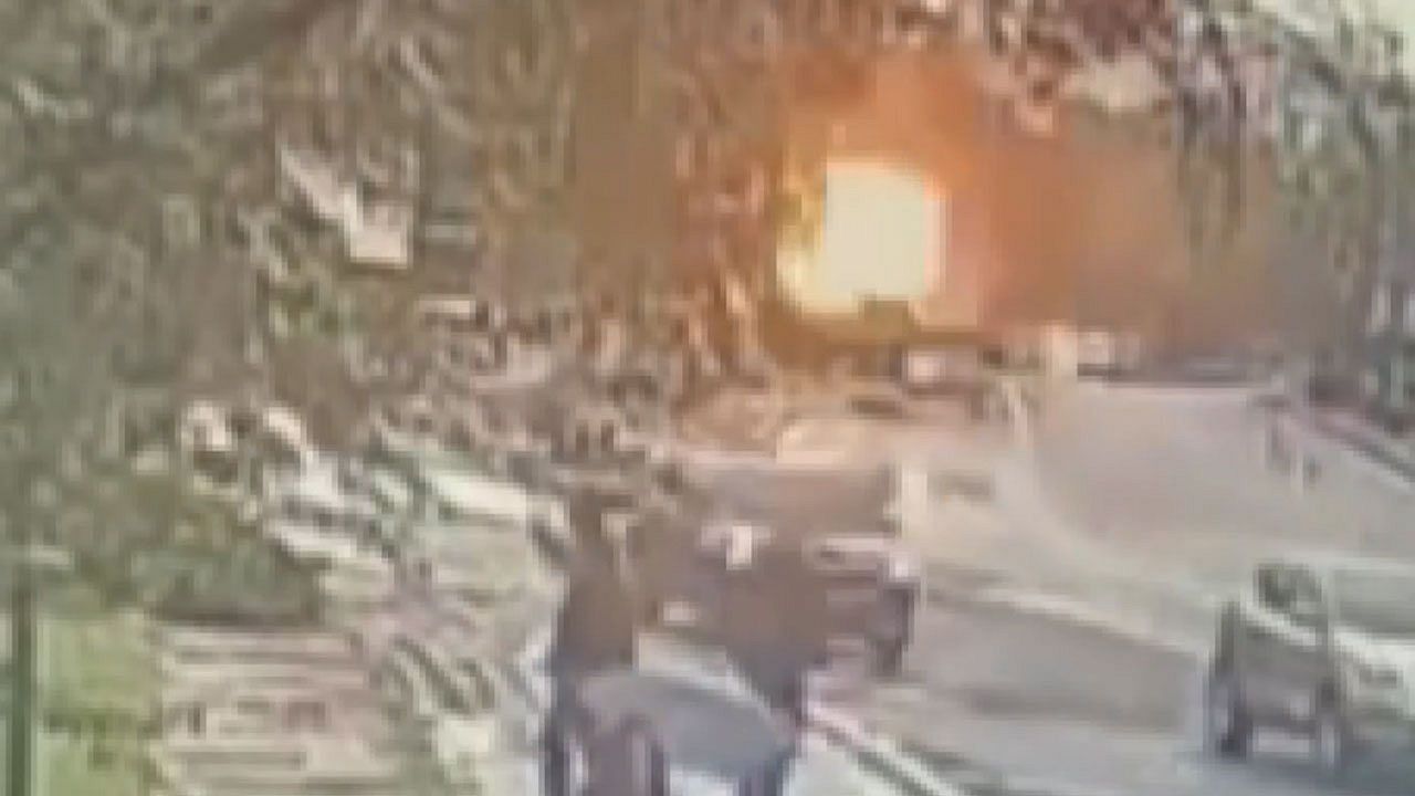 Terör saldırısında kullanılan aracın patlama anı kameralara yansıdı.