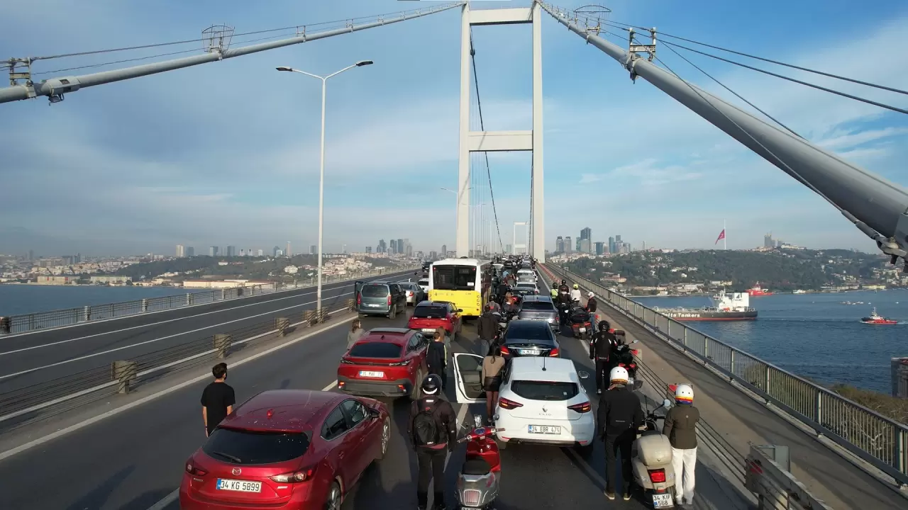 Sabah saatlerinde 15 Temmuz Şehitler Köprüsü’nde araçlarıyla seyir halinde olan sürücüler, saat 09.05’i gösterdiğinde araçlarını durdurarak saygı duruşunda bulundu. Siren seslerinin yankılandığı o anlarda, köprü üzerinde ve çevresinde zaman adeta durdu.