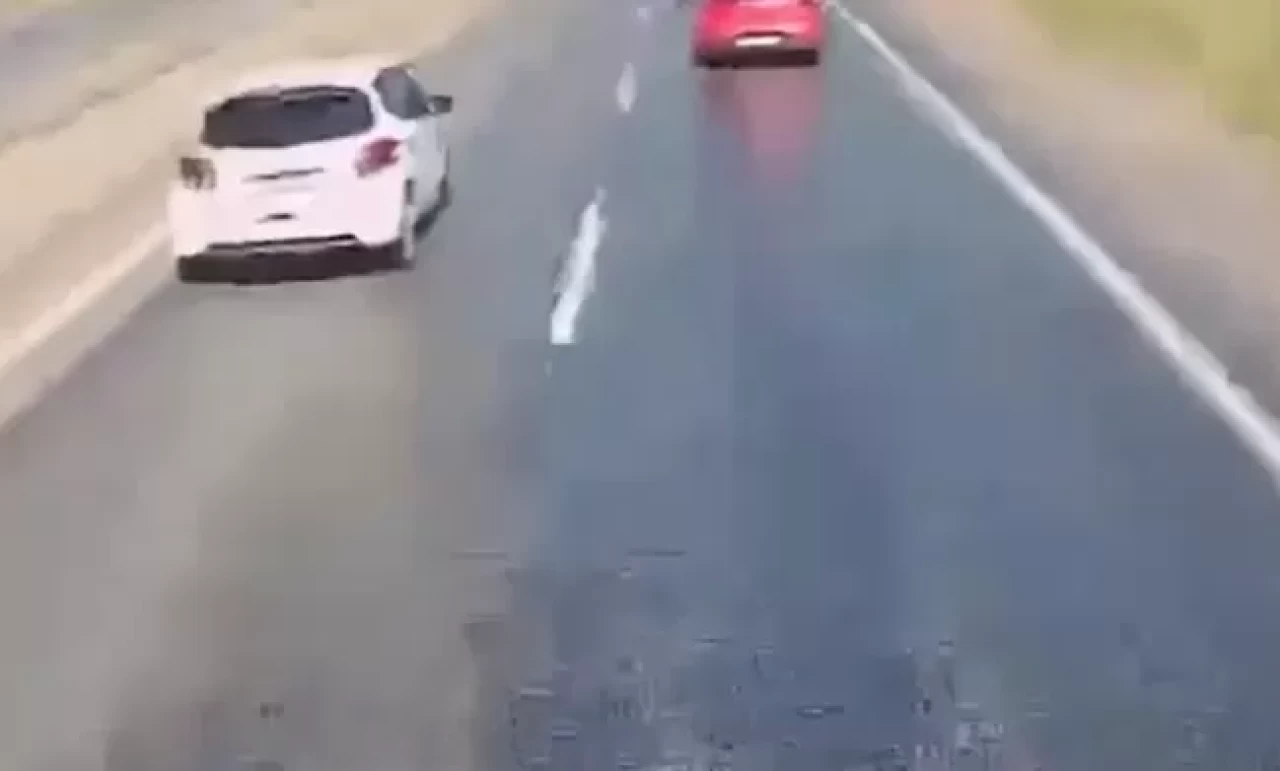 Kaza anı bir yolcu otobüsünün güvenlik kamerasınca kaydedildi.