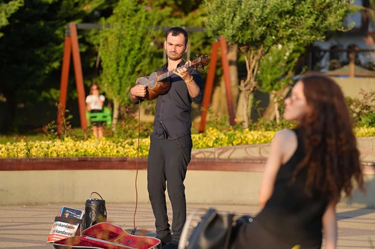 İskandarov, bir zamanlar memleketinde, ailesi ve arkadaşlarıyla birlikteyken çaldığı tarı, bugünlerde Üsküdar'daki Beylerbeyi Parkı ile Ortaköy Meydanı'nda dinleyicilerin beğenisine sunuyor.