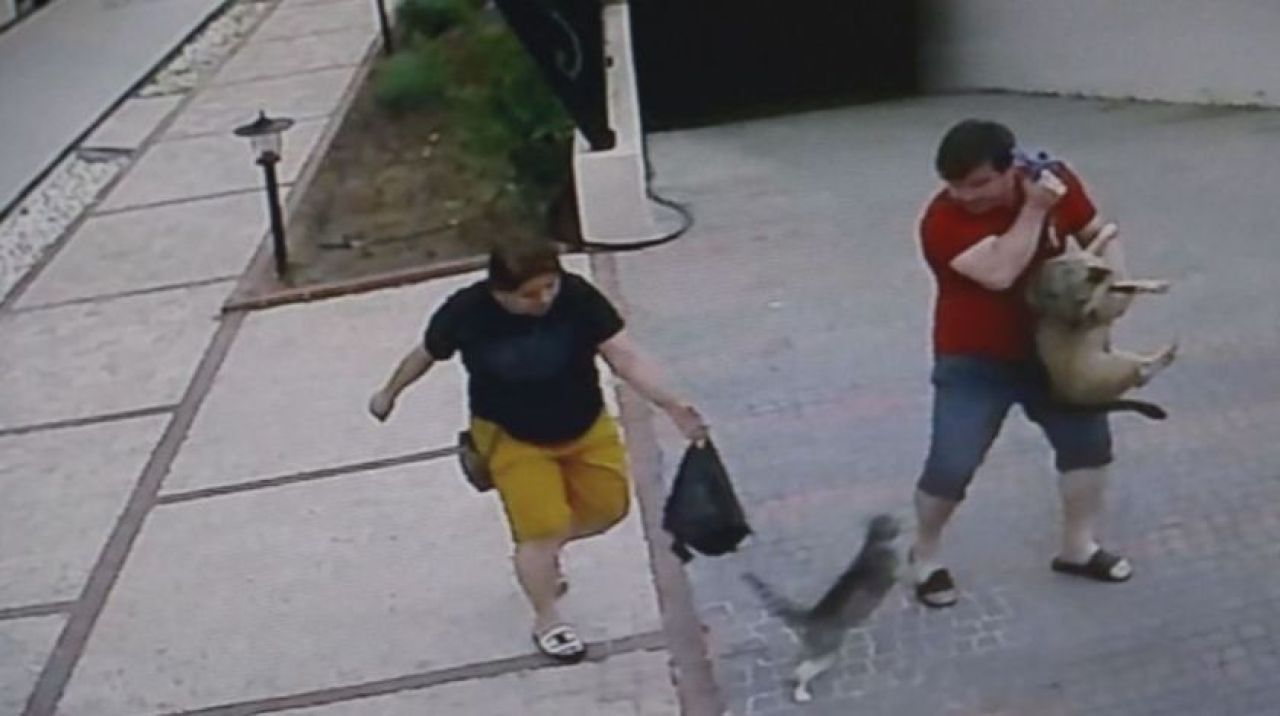 Antalya’da köpekli bir çift, bir anda ortaya çıkan kedinin saldırısına uğradı. Neye uğradığını şaşıran çift köpeklerini geri çekmeye çalışırken bir yandan da kendilerini korumaya çalıştı.