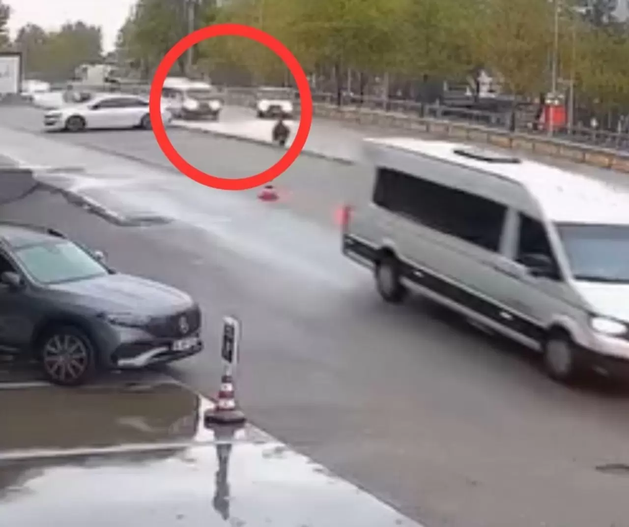 Yaşanan kaza, çevredeki iş yerlerinin güvenlik kameralarına da yansıdı. Görüntüler, kazanın ciddiyetini ve yayaların son anda kurtulma anını gözler önüne seriyor.