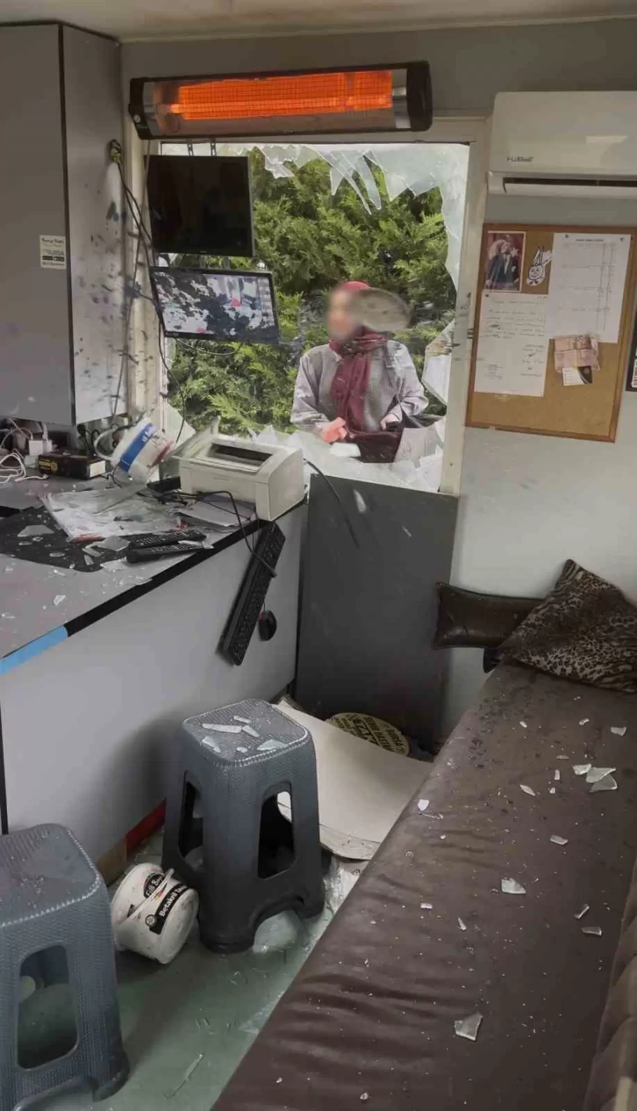 "Dün saat 4 civarında durağımıza iki yolcu geldi. Erkek yolcu önce geldiği için araca alındı. Kadın yolcuya ise ikinci aracın bir dakika içinde geleceğini söyledik. Buna rağmen ‘Beni neden almıyorsunuz, beni beğenmiyorsunuz’ diyerek tepki gösterdi. ‘Taksi beni sevmiyor’ diyerek bir anda saldırıya geçti. Sakinleştirmeye çalıştık ama dinlemedi. Kadın olduğu için müdahale etmedik ancak durağımızı harabeye çevirdi. Camlarımız kırıldı, bilgisayarlarımız parçalandı, boya kovalarını içeri attı. Çok mağdur olduk."