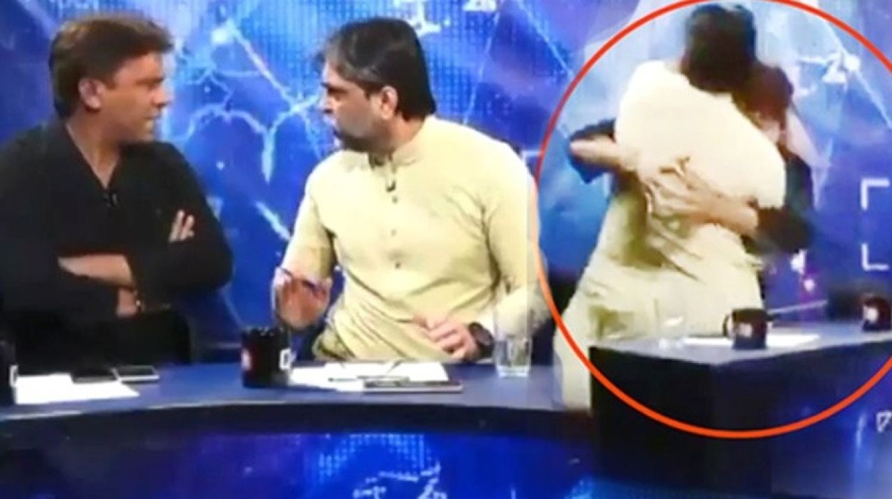Pakistan'da yayınlanan bir televizyon programında iktidar partisinin liderlerinden biri, birlikte canlı yayına katıldığı gazeteciye saldırdı.