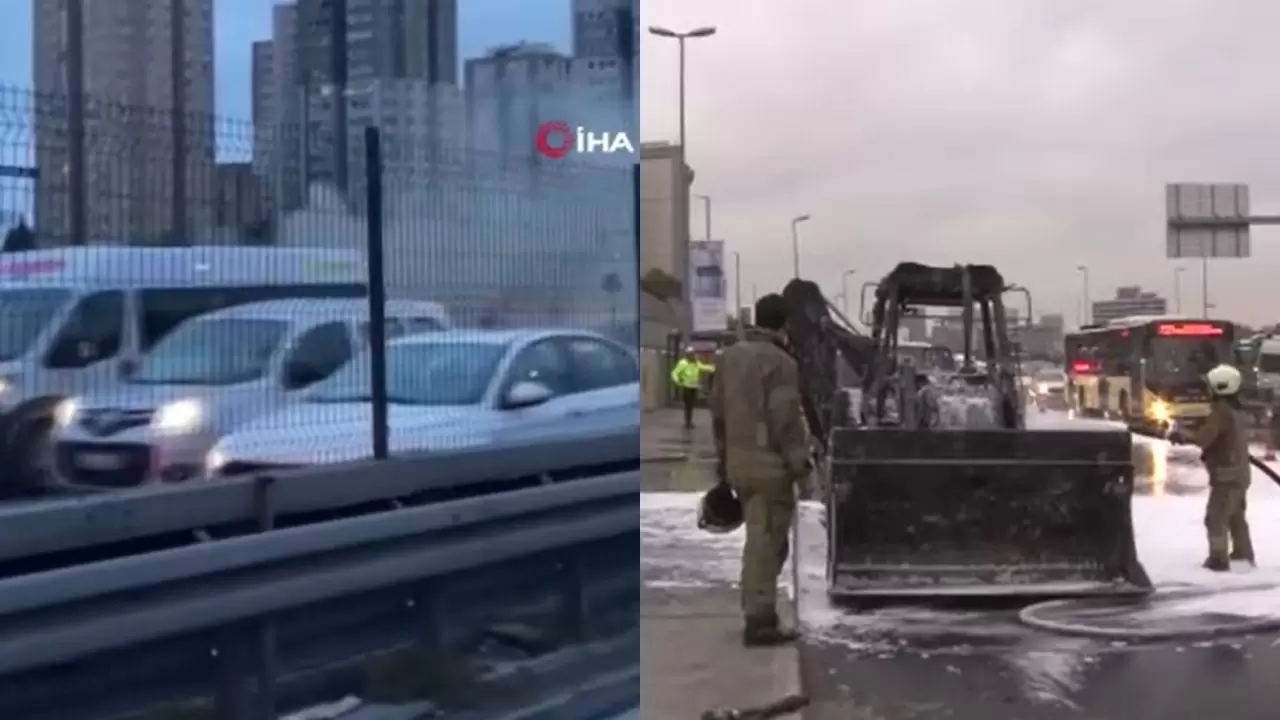 Yangında iş makinesi tamamen kullanılamaz hale geldi. Soğutma çalışmalarının ardından iş makinesi olay yerinden kaldırılırken, trafik bir süre sonra normale döndü.