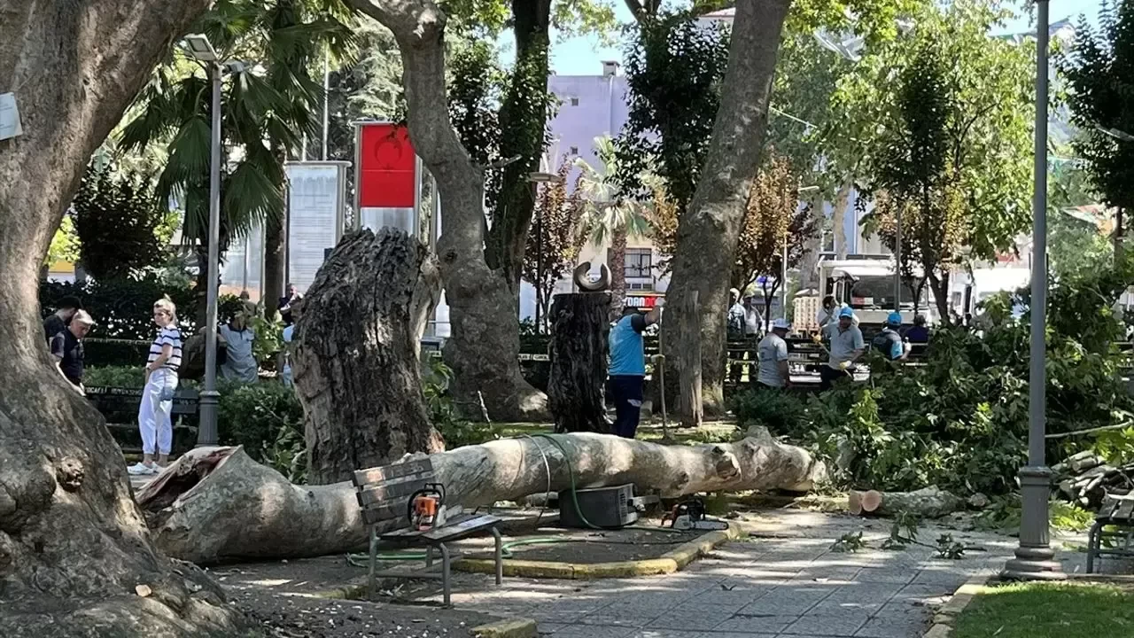 Can kaybına yol açan olay anı ise güvenlik kamerasına saniye saniye yansıdı. Görüntülerde çınar ağacından kopan dalın devrildiği anlar ve çevredekilerin panikle bölgeye doğru koşması yer aldı.