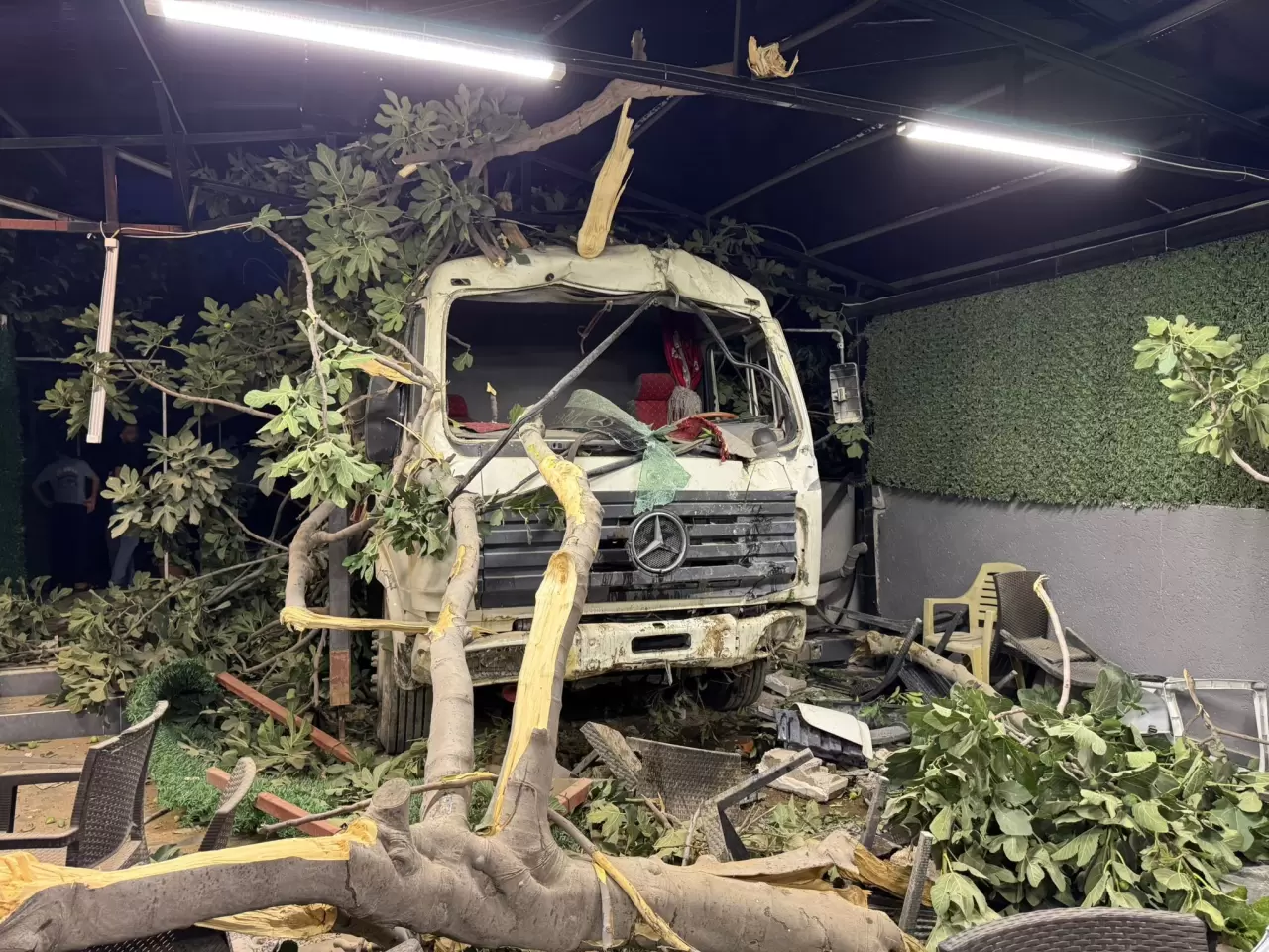 İş yerinde sipariş beklediği sırada hafriyat kamyonunun uçarak iş yerine girdiğini ifade eden Ahmet Aksu, "Ben bu iş yerinde motokurye olarak çalışıyorum. Dışarıda sipariş beklerken yüksek ve gürültülü bir ses geldi. İçeriye girip baktığımda hafriyat kamyonu bahçeye uçarak dükkana girdi. Kentte devam eden orman yangını nedeniyle helikopter diye düşünüyordum ama gökyüzünde helikopter olmayınca içeriye baktığımda kamyonu gördüm. Zararımız var. Masalarımız, sandalyelerimiz ve ağaçlarımız zarar gördü. Bir de müşterimizin ayağından hafif yaralanması oldu. Allah bir daha göstermesin. Bu durumun olacağı hayatta aklımıza gelmezdi" ifadelerini kullandı.