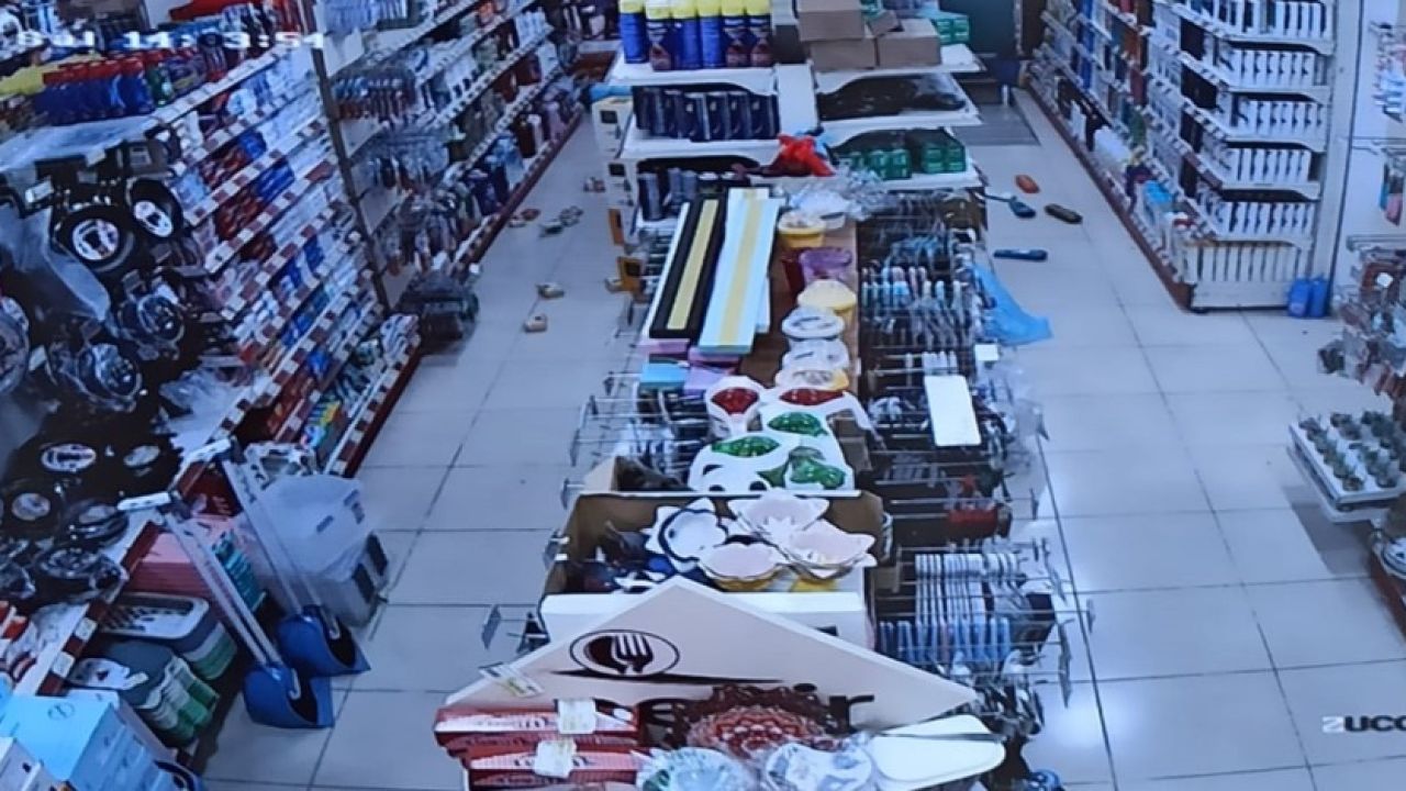 Kütahya Altıntaş'ta meydana gelen ve Afyonkarahisar’da hissedilen 5'lik depremde bir marketteki raflardaki ürünlerin devrilme anı kameralara yansırken, bir market çalışanının da o esnada ayakta olmasına karşı şok yaşayıp donakalması, anbean görüntülendi. Deprem anında sarsıntının şiddeti ile ilçedeki bir marketteki raflardan ürünlerin devrilip, yere düştüğü anlar anbean güvenlik kameralarına yansıdı. Görüntülerde şampuanlar başta olmak üzere raflardaki çeşitli ürünlerin yere düştüğü görülüyor.