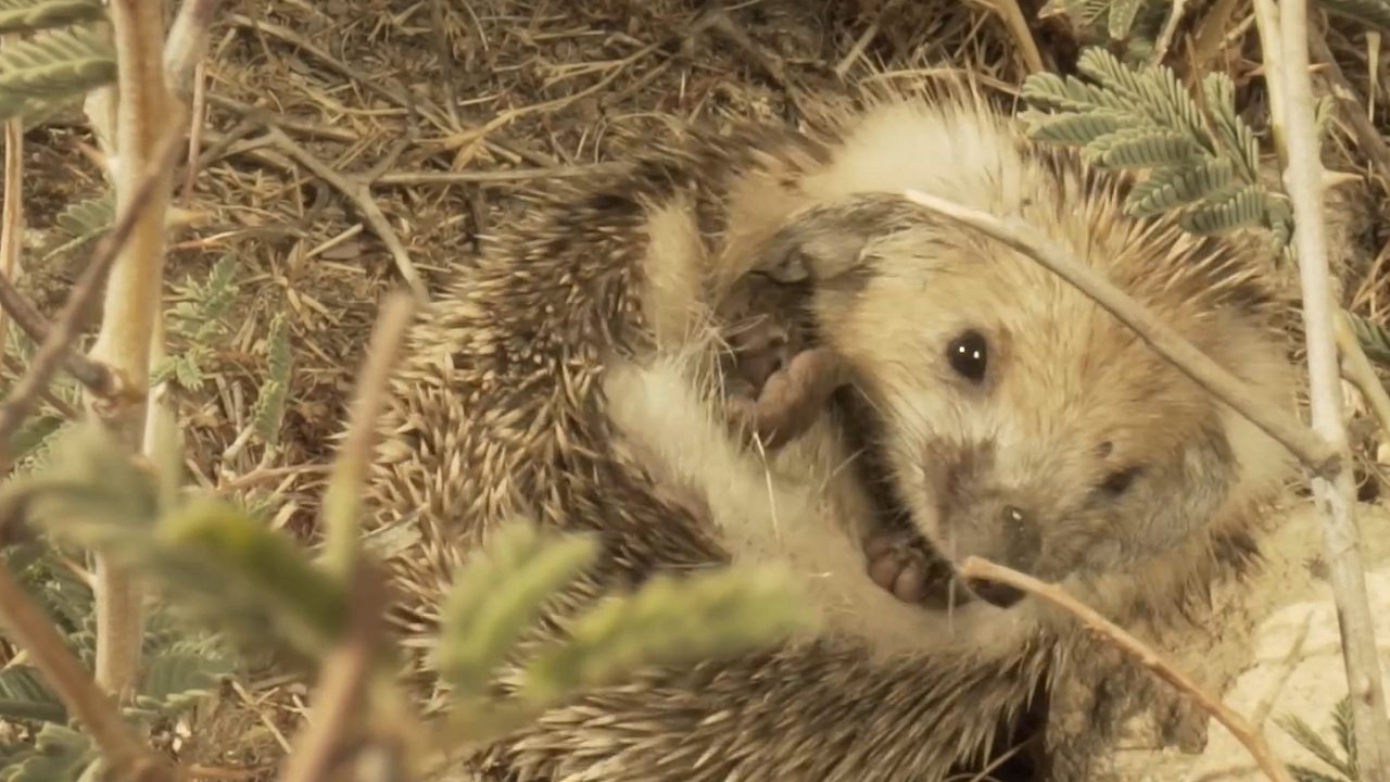 Sırt üstü yattı, gezdi, uyudu.. O toprağın içinde ayırt edilemeyen Uzun kulaklı çöl kirpisi.