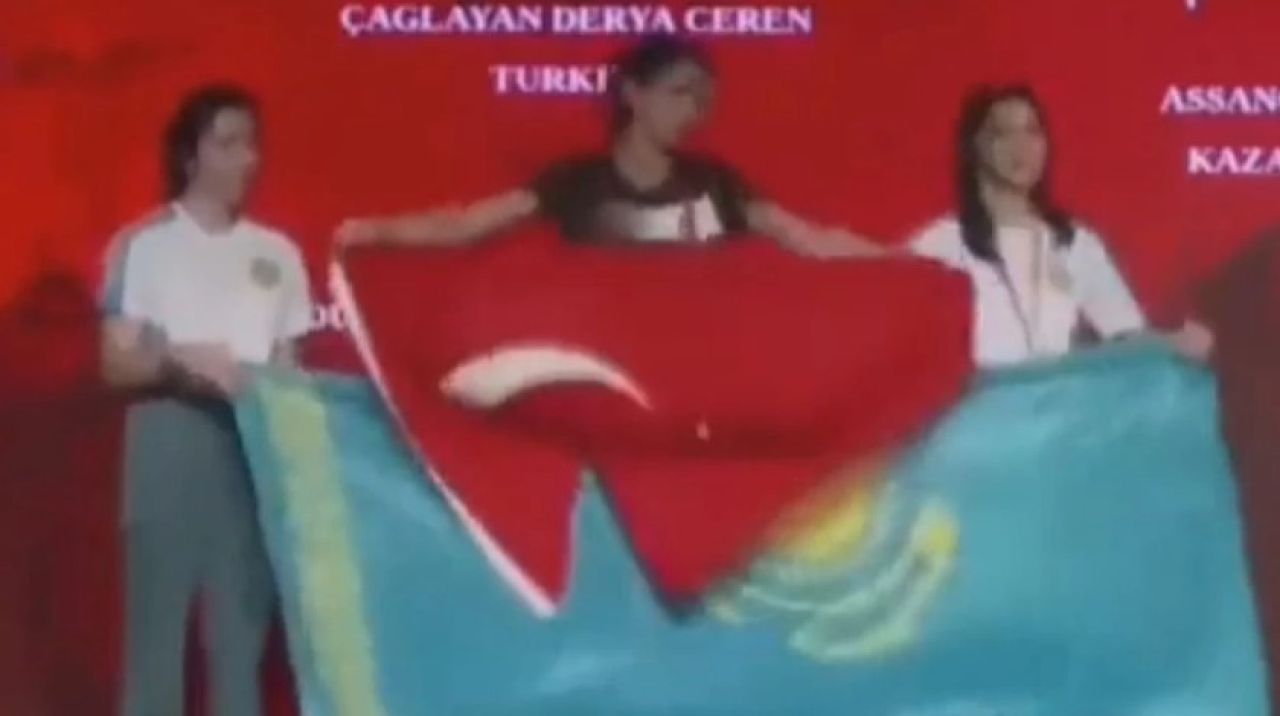 43. Dünya Bilek Güreşi Şampiyonası'na Türk ve Kazak sporcular arasındaki gerginlik damgasını vurdu. Kazak sporcuların nezaket dışı hareketine Türk bayrağıyla cevap verdi.