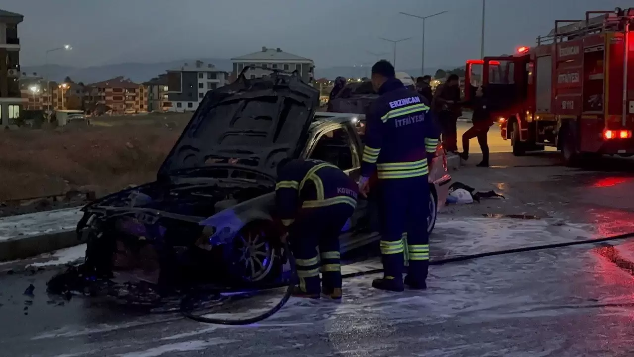 Erzincan’da seyir halindeyken motor kısmından alev alan otomobil, kısa sürede tamamen yanarak kullanılamaz hale geldi. Araçta bulunan 2 kişi, facianın eşiğinden döndü.
