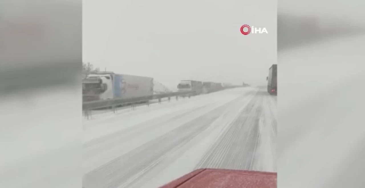 Kar Yağışı TIR Sürücülerini Zorluyor