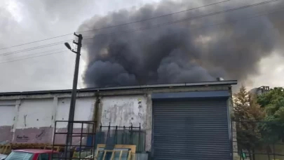 Rami Kışla Caddesi'nde bulunan 4 katlı iş yerinin giriş katındaki plastik deposunda henüz belirlenemeyen nedenle yangın çıktı.