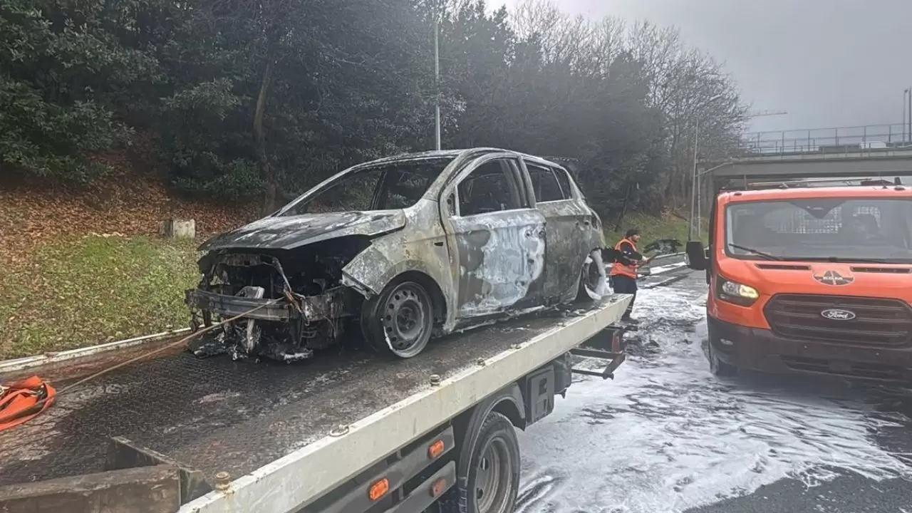 İtfaiye ekiplerinin müdahalesiyle yangın söndürülürken, araç kullanılamaz hale geldi.