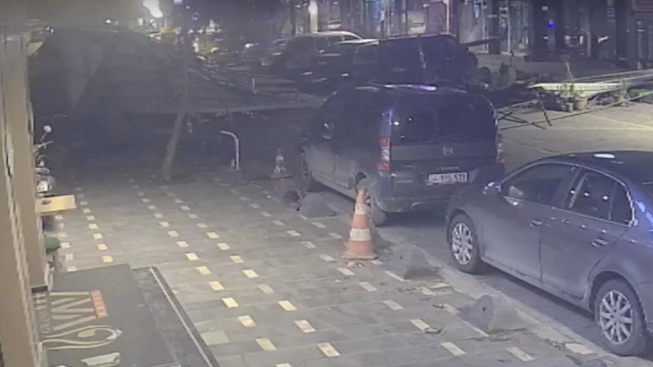 Yaşanan anlar, çevredeki bir iş yerinin güvenlik kameralarına yansıdı. Görüntülerde, Ceviz’in aracına doğru koştuğu sırada şiddetli fırtına ile çatının üzerine düşmesi yer aldı.