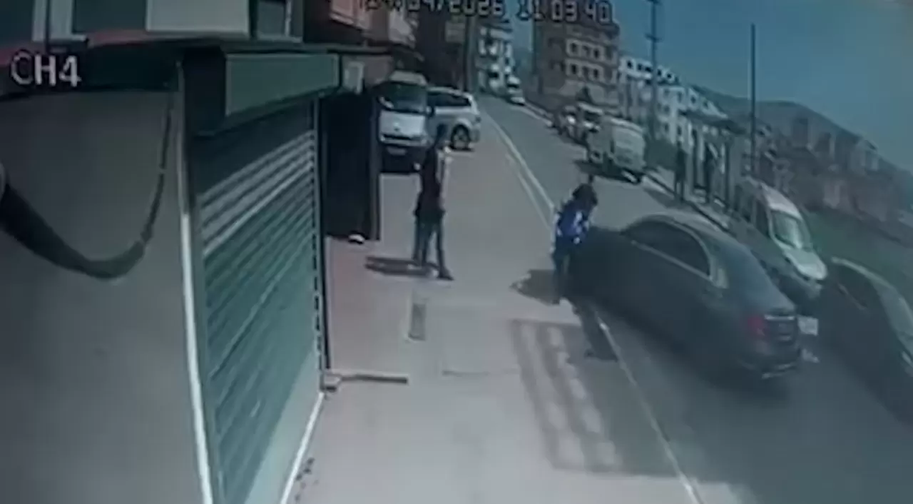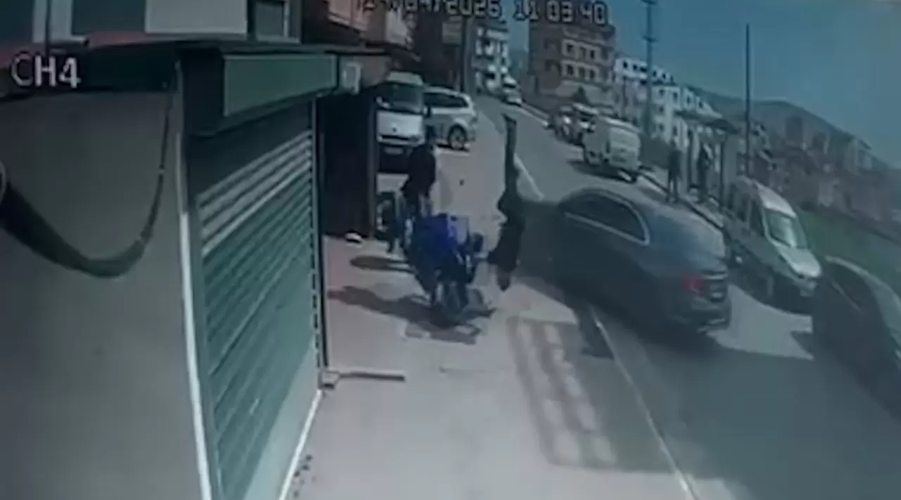 Meydana gelen olay, çevrede bulunan bir iş yerinin güvenlik kamerası tarafından kaydedildi. Görüntülerde motosikletlinin yol kenarında ilerlediği, karşı yönden gelen otomobilin aniden kaldırıma yönelerek motosiklete çarptığı ve sürücünün savrulduğu anlar yer aldı.