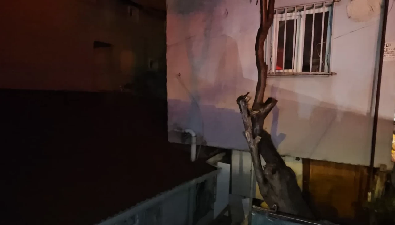 Zeminde oluşan çatlağın ardından binanın üst katı geriye doğru kaydı. Kayma sonucu bina, arka kısmında bulunan bir gecekondunun çatısına yaslanarak sabit kaldı.