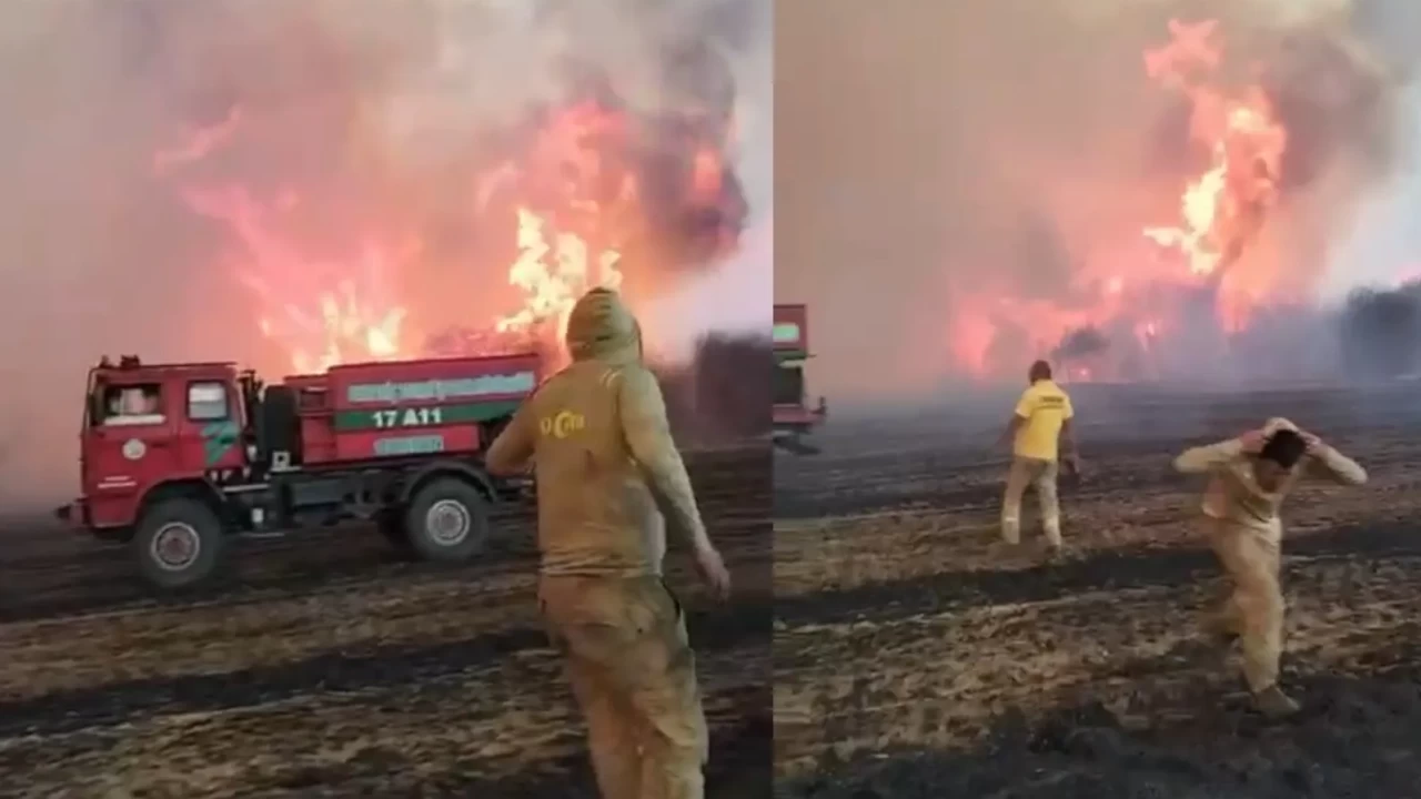 Çanakkale’nin Gelibolu ilçesinde çıkan orman yangınına Orman Bölge Müdürlüğü ekipleri havadan ve karadan müdahale etmeye devam ediyor. Ekiplerin karadan müdahalesi sırasında yaşadığı zor anlar, cep telefonu kameralarına yansıdı.