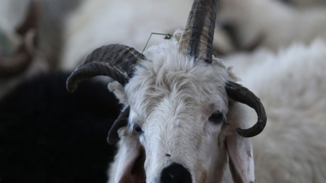Bursa'daki kurban pazarına getirilen 4 boynuzlu koç ilgi odağı oldu.