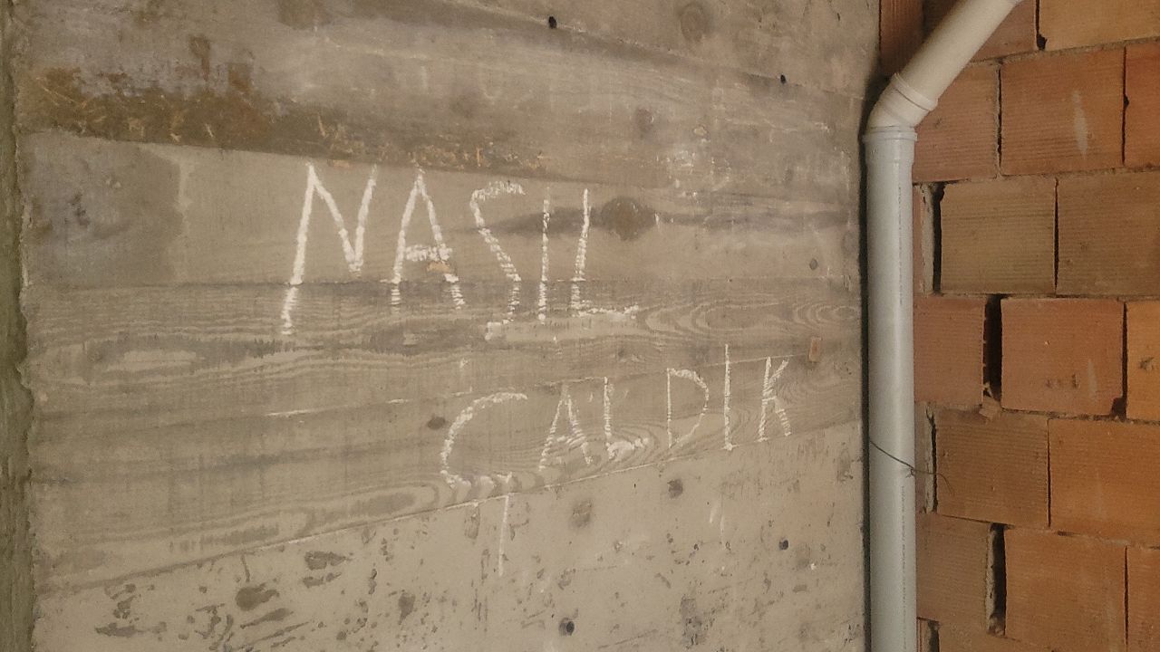 Hırsızların yazdıkları yazı ile tekrar geleceklerini ima ettiklerini söyleyen Çağlayan, “Yazdığı yazı ile yeniden gelebiliriz diyor. Birde üst tarafına bir yazı daha yazmak istemişler ama sonradan silmişler, okumak için uğraştık ama okuyamadık yazıyı. Oradaki yazıyı sanırsam beğenmedi, alt tarafına bu yazıyı yazdı” diye konuştu.