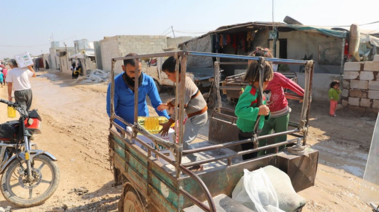 Suriye’nin kuzeyinde Fırat Kalkanı Harekatı ile terörden arındırılan El Bab, Cerablus ve Kilis’in karşısında Azez kırsalında bulunan çadır kentlerde yaşam mücadelesi veren ailelere bin 940 gıda kolisi dağıtıldı.