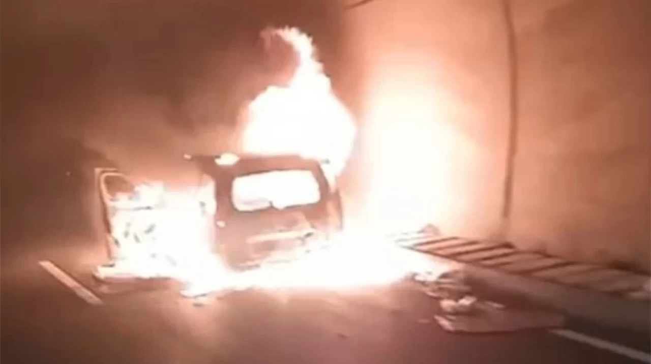Kastamonu’da Ilgaz 15 Temmuz İstiklal Tüneli içerisinde motor bölümünden alev alan hafif ticari araç, alev alev yanarak küle döndü.