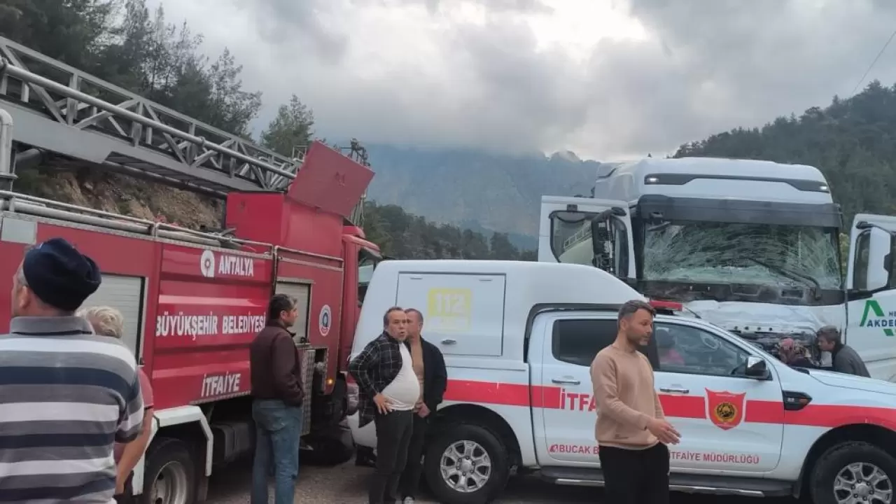 Antalya-Isparta karayolunda saat 17.00 sıralarında meydana gelen kazada, henüz plakaları ve sürücüleri belirlenemeyen tır ile minibüs çarpıştı.