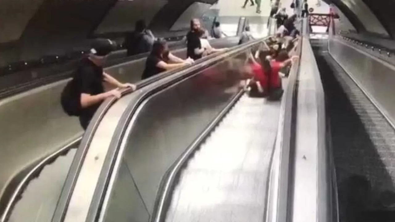 Görüntülerde, vatandaşların yürüyen merdivenin durup hızla ters yönde hareket etmesiyle ayakta durmakta zorlandıkları ve bir süre sonra yere düştükleri görülüyor. O anlarda yaşanan panik ve kaos kameraya yansıdı.