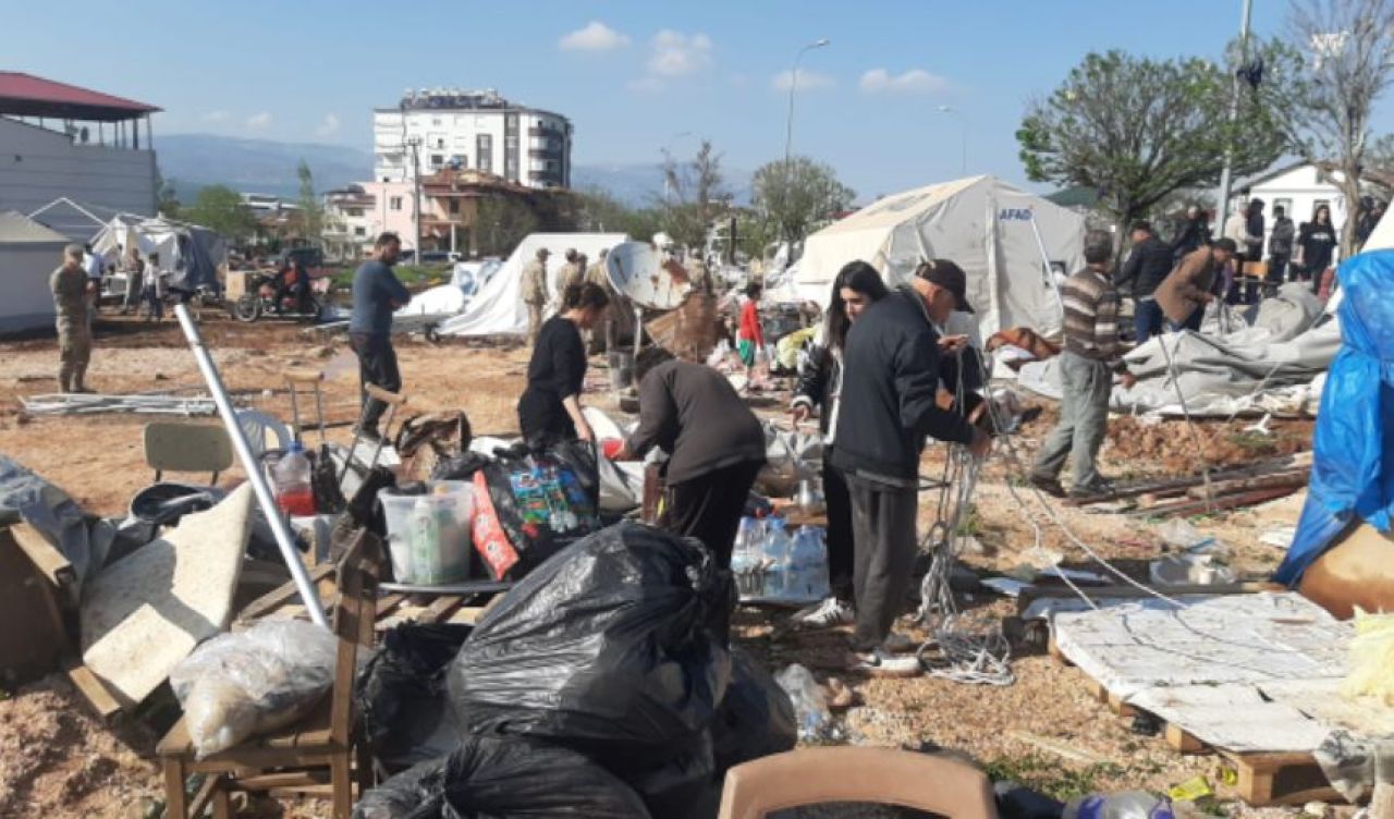 Yaklaşık 170 tane çadırımızda hasar gözüküyor. Bunları hızlı bir şekilde gün içerisinde tekrar yenileyip afetzede vatandaşlarımızı tekrar içerisine yerleştirmeyi ve mağduriyeti azaltmayı planlamaktayız. Ama hakikaten benim de şu ana kadar gördüğüm enteresan felaketlerden bir tanesi. Arabayı, dev arabaları devirecek kadar, özel yapım konteynerleri devirecek kadar, çatıları birkaç yüz metreye taşıyacak kadar büyük rüzgar faaliyeti ilçemizde vuku buldu. Geçmiş olsun, inşallah kötü bir haber almadan ufak tefek yaralılarımızla beraber bu işi salimen ardımızda bırakırız diye düşünüyorum."