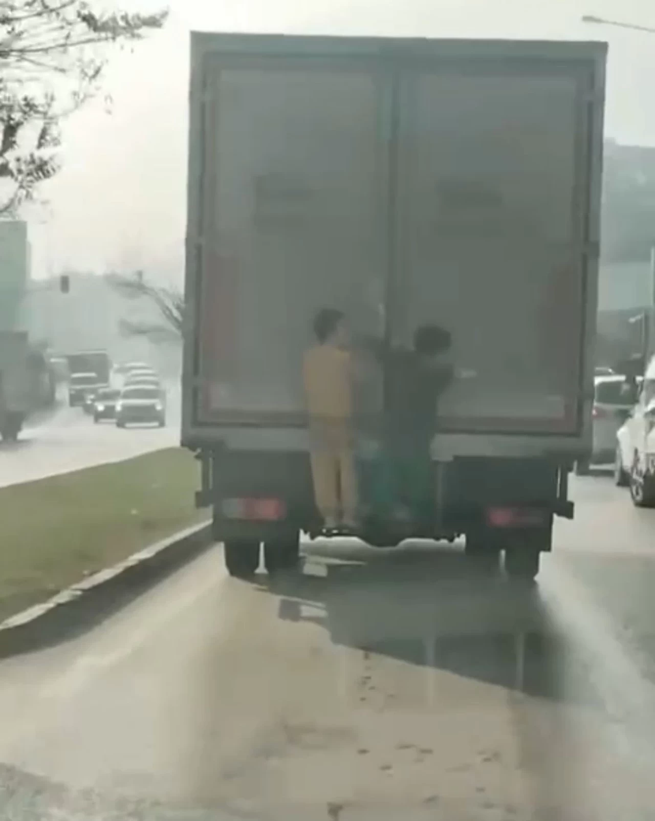 Canlarını hiçe sayarak kamyonun arkasına tutunan çocuklar, dakikalarca aracın peşinde ilerlediler. Çevredeki vatandaşlar, çocukların bu tehlikeli hareketine tanık oldu ve endişeyle izlediler.