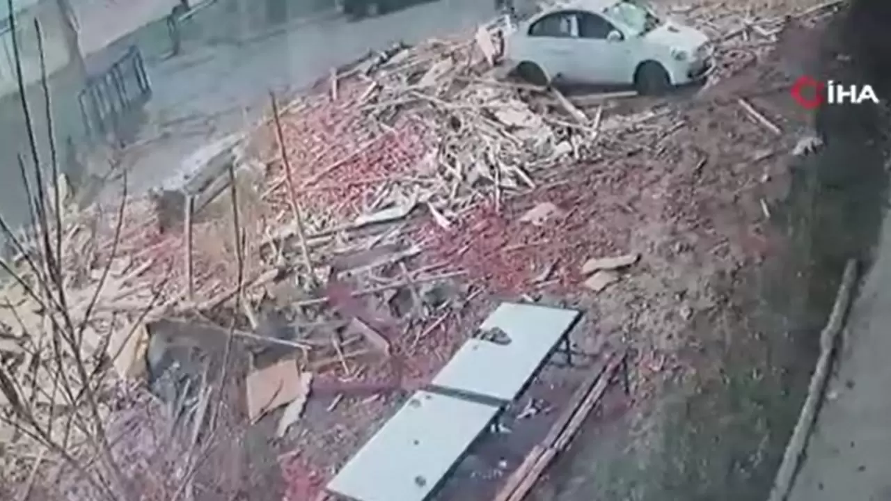 Yaşananlar apartmanın güvenlik kamerasına saniye saniye yansıdı. Görüntülerde, Özdil’in yukarıya baktığı sırada çatının bir anda savrularak bahçeye düştüğü anlar yer aldı.