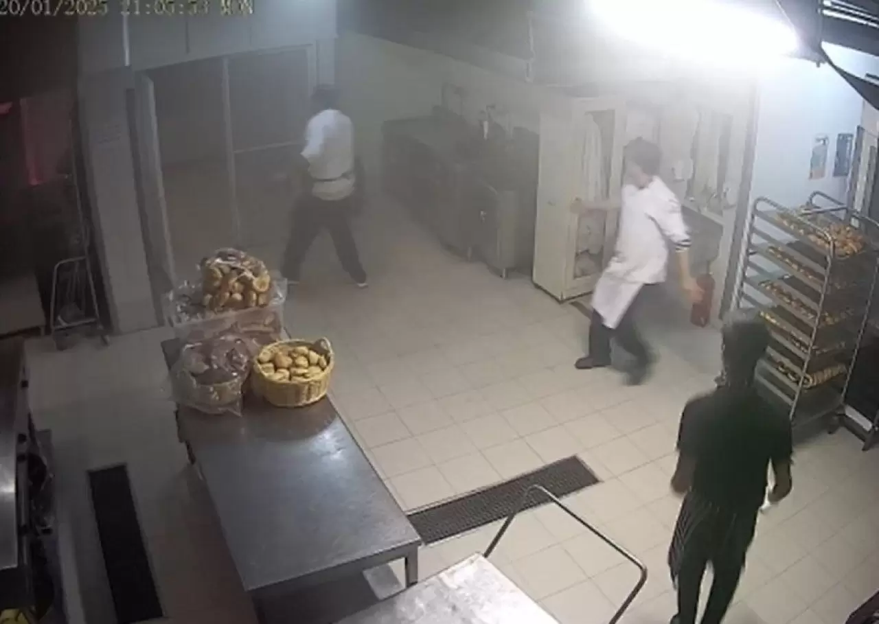 Görüntülere göre, otelin mutfak kısmında yangını fark eden çalışanlar, lavabonun altındaki yangın söndürme tüpünü kullanmadan panik halinde kaçıyor ve alevlerin büyümesiyle etrafı duman kaplıyor.