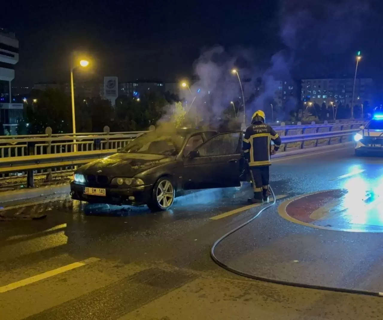 Edinilen bilgiye göre, Mevlana Mahallesi Mustafa Kemal Paşa Bulvarı üzerinde seyreden E.Ö. yönetimindeki 38 BM 140 plakalı otomobil motor kısmından dumanlar çıkarmaya başladı. Sürücü E.Ö., otomobili durdururken dumanlar kısa sürede alev aldı.