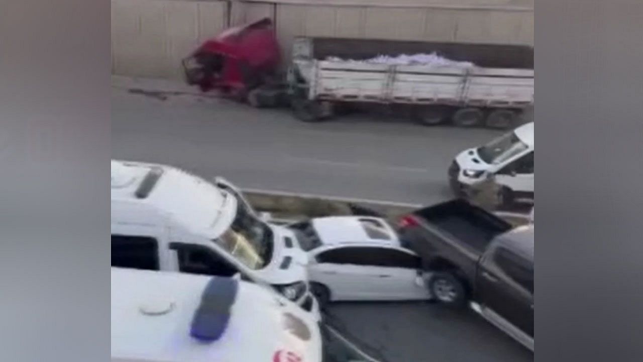 Akşam saatlerinde Sincan ilçesi Ayaş yolu Ankara istikametinde seyir halinde olan Ç.Ç. idaresindeki 06 DJP 554 plakalı kamyon, yol kenarındaki beton bariyerlere ve istinat duvarına çarptı.