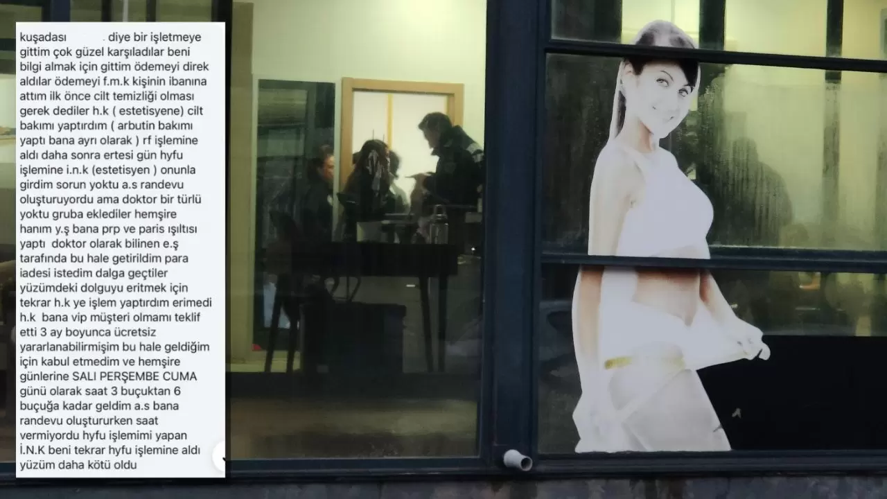 Edinilen bilgiye göre, işlem sonrası bir kolunun felç kaldığını iddia eden bir kadının şikayeti üzerine başlatılan soruşturma kapsamında Sağlık Müdürlüğü, polis ve zabıta ekipleri söz konusu güzellik merkezine baskın düzenledi. Denetimde doktor, hemşire ve uzman unvanıyla çalışan kişilerin diplomalarının bulunmadığı ve sahte unvan kullandıkları öne sürüldü. Ayrıca kullanılan bazı tıbbi malzemelerin son kullanma tarihinin geçtiği belirtildi.