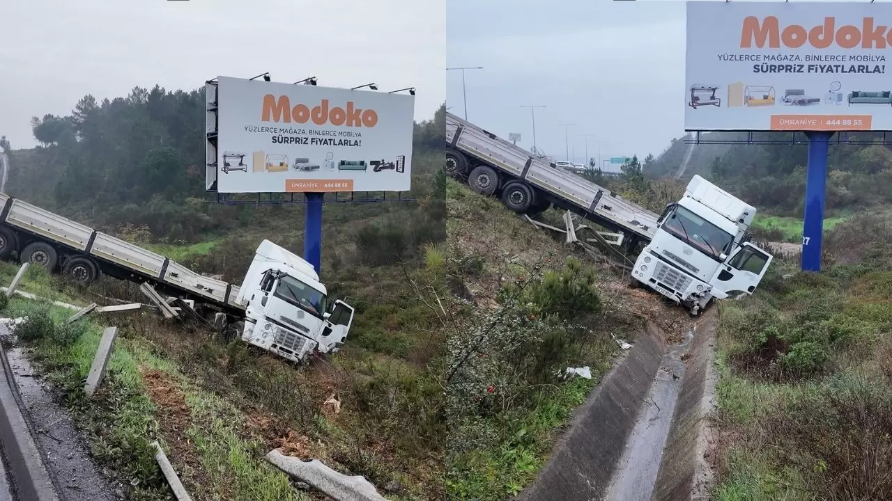 Kaza, saat 13.45 sıralarında Kuzey Marmara Otoyolu’nun Ümraniye istikametinde meydana geldi. O.Ö. yönetimindeki tır, yağış nedeniyle sürücünün direksiyon hakimiyetini kaybetmesi sonucu bariyerleri aşarak devrildi.