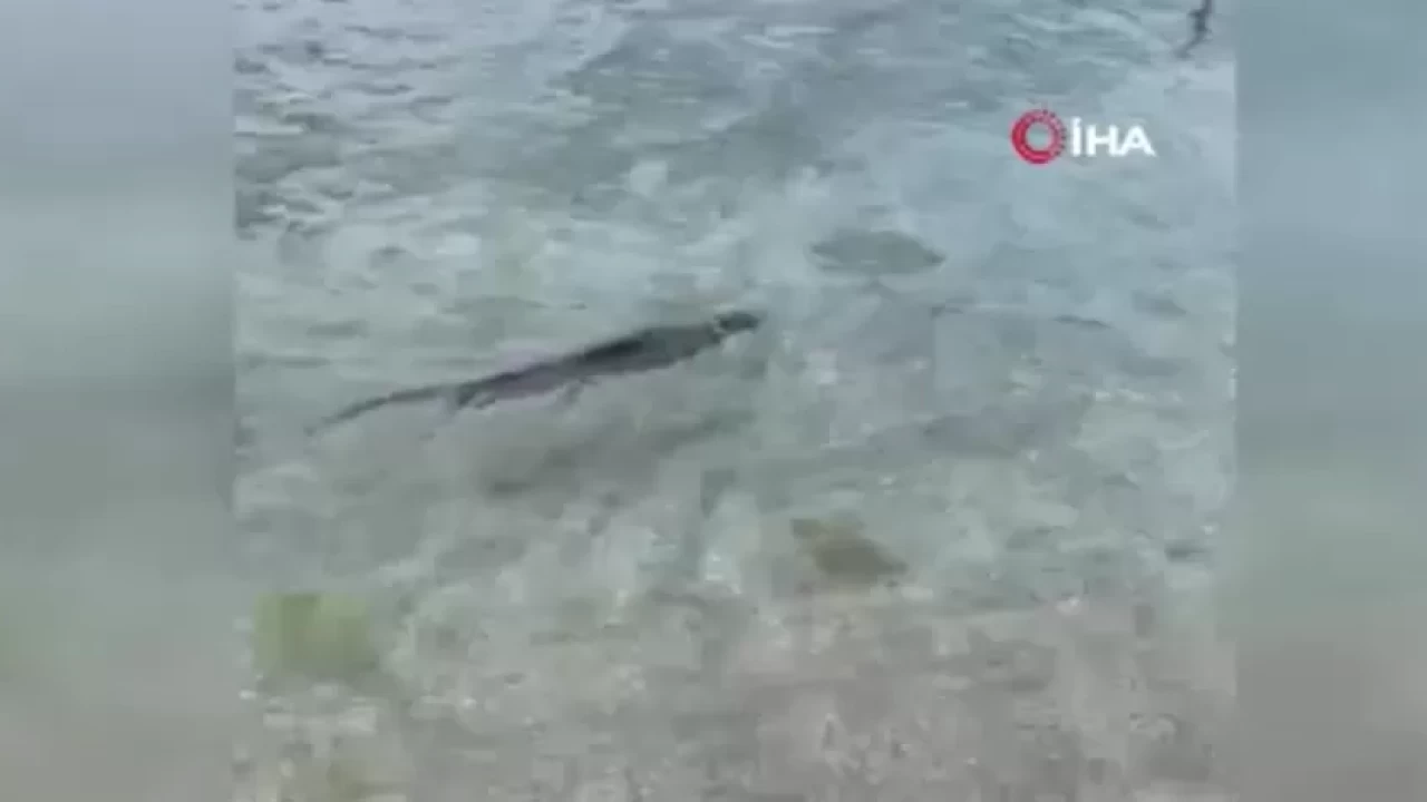 Marmara Denizi’nde kıyaya yakın yerlerde ahenkle dans eden su samuru, denizde bulunan vatandaşları heyecanlandırdı.