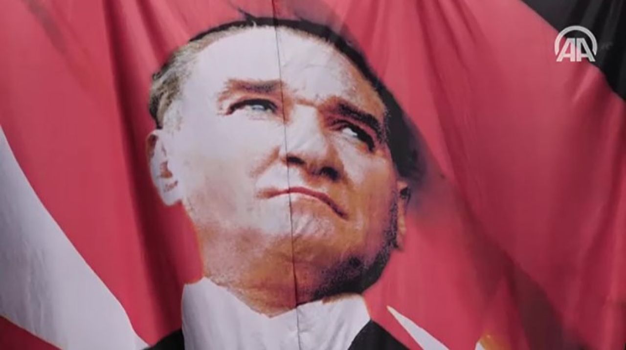Denizli'nin Pamukkale ilçesinde 19 Mayıs kutlamaları kapsamında 700 öğrencinin katılımıyla "Ay yıldız ve 100. yıl" koreografisi oluşturuldu.