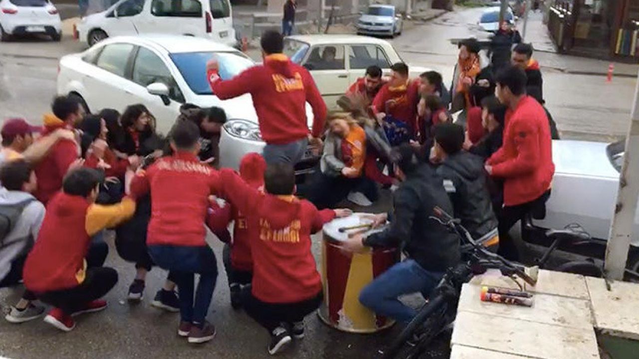 Burdur’da, derbi öncesi takımları lehine tezahürat yapan bir grup Galatasaray taraftarının arasına otomobil daldı.