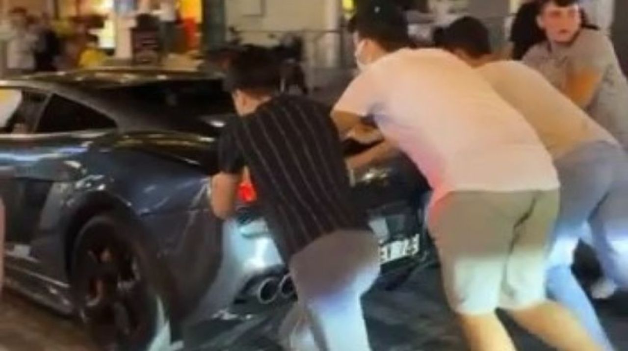 Pendik’te seyir halinde olduğu esnada arızalanan Lamborghini marka otomobili vatandaşlar iterek hareket ettirmeye çalıştı. Yaşanan ilginç anlar ise vatandaşın cep telefonu kamerasına yansıdı.
