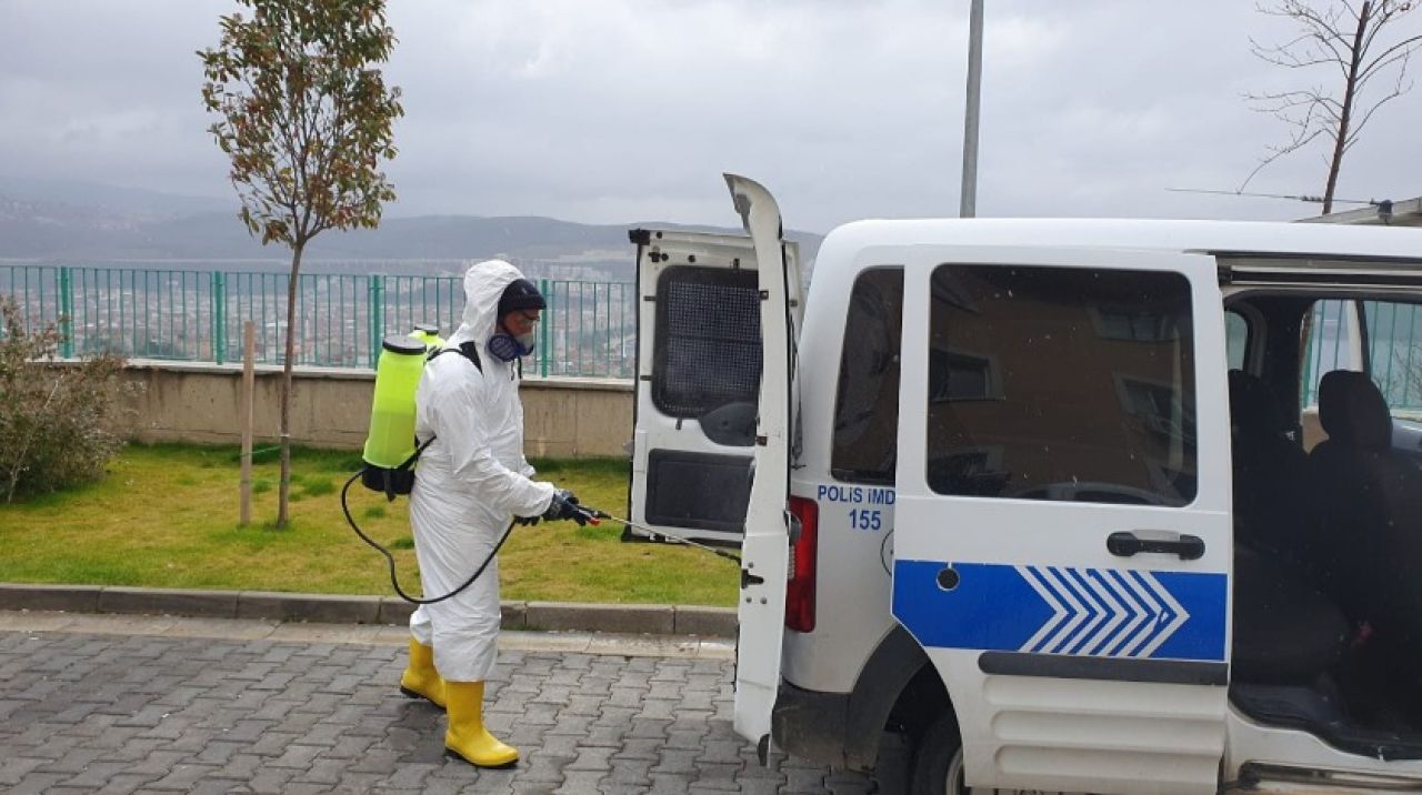 Bursa'nın Gemlik ilçesinde polis araçları korona virüsü tehlikesine karşı ilaçlanarak dezenfekte edildi.