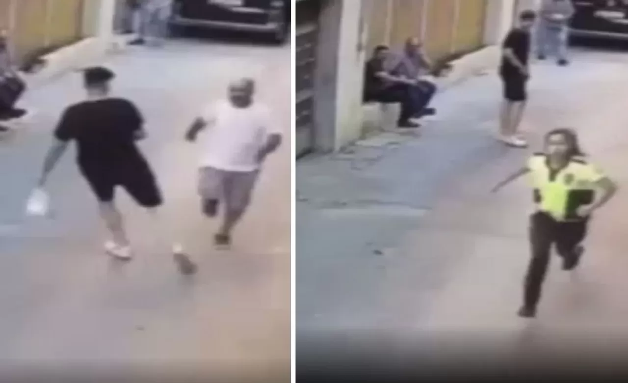 Polislere yardım etmek isteyen bir vatandaş, şüpheliyi çelmeleyerek yere düşürdü. Bu müdahale sonucu şahıs, polis ekipleri tarafından kolayca yakalanıp gözaltına alındı. O anlar, civardaki bir işyerinin güvenlik kamerası tarafından kaydedildi.