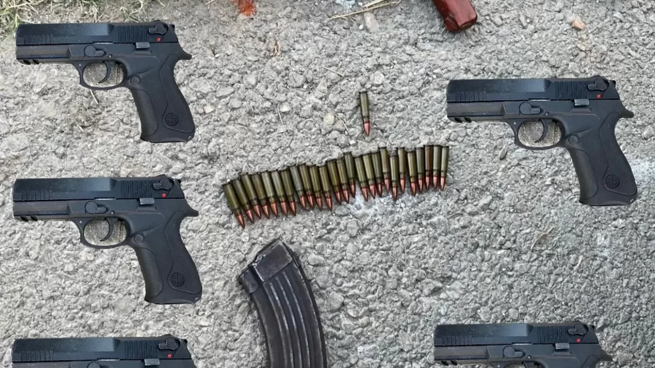 Araçta yapılan incelemede, ruhsatsız 5 tabanca ve kalaşnikof piyade tüfeği ele geçirildi.