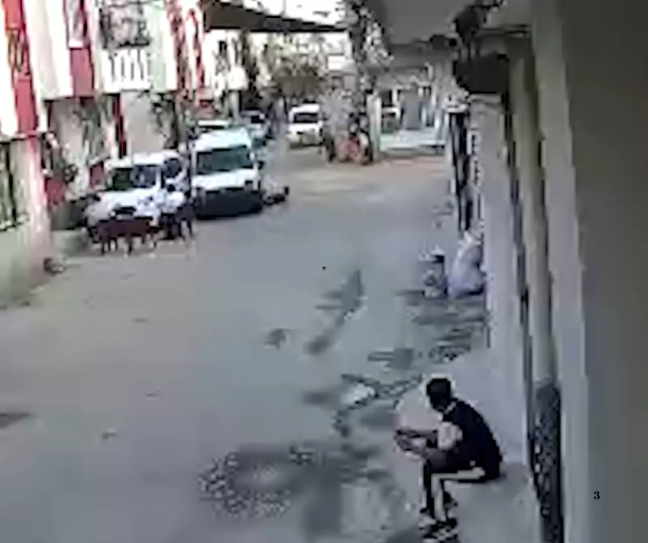 Öte yandan şüphelilerin olduğu aracın bisikletliye çarpması, çocuğun da aracın altında kalmaktan son anda kurtulması güvenlik kamerasınca kaydedildi.
