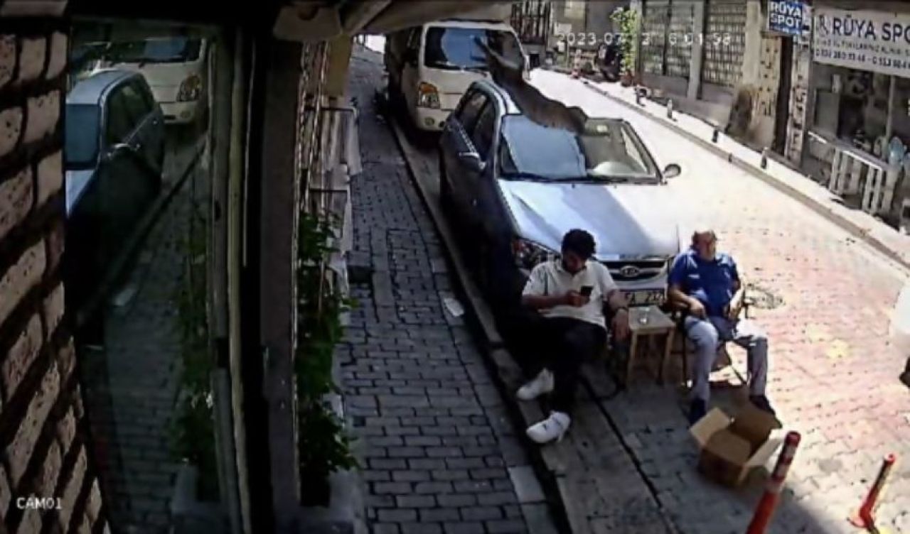 İstanbul Kağıthane'de berber dükkanının önünde saç tıraşı olmak için sıra bekleyen kişinin üzerine ikinci kattan kedi düştü. Kedi olayın ardından kayıplara karışırken olay anı güvenlik kameralarına yansıdı.